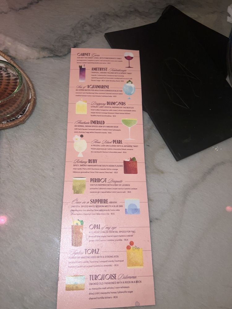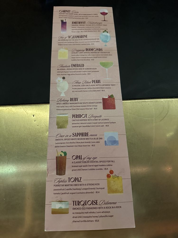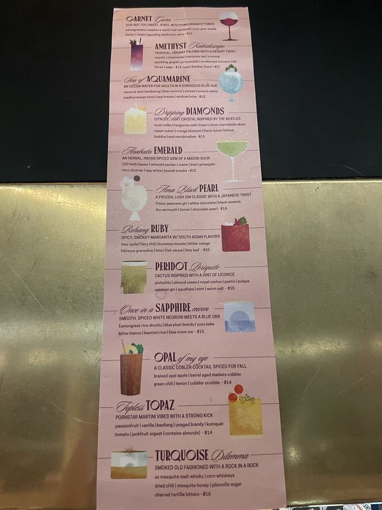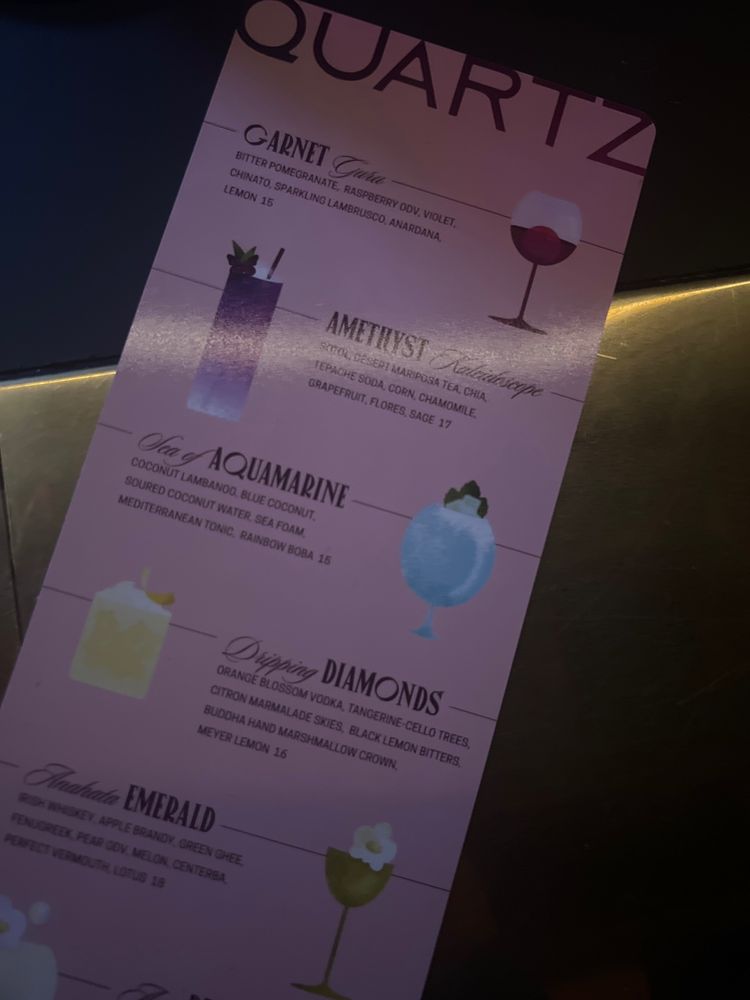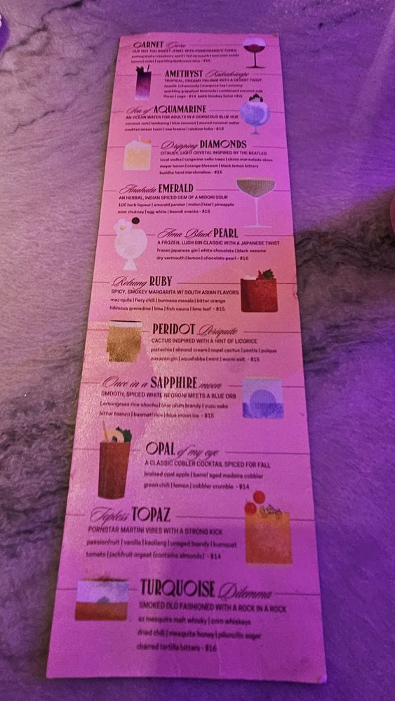 Located in Phoenix, Arizona, Quartz is a trendy cocktail bar known for its elaborate and delicious cocktails. The atmosphere is described as hipster, trendy, intimate, and classy, making it a great spot for groups or a romantic evening out. Customers rave about the fantastic service and the unique presentations of the cocktails. The bar offers Happy Hour specials, a full bar, gender-neutral restrooms, outdoor seating, a pool table, Wi-Fi, and more. One highlight is The Cave, a private room with its own unique ambiance. The cocktail menu is a mixology masterpiece, with creative drinks like the tomb of the fizzy kitty. Overall, Quartz provides not just a bar experience but a memorable one filled with exceptional drinks and great service. A must-visit for cocktail enthusiasts seeking a one-of-a-kind experience.